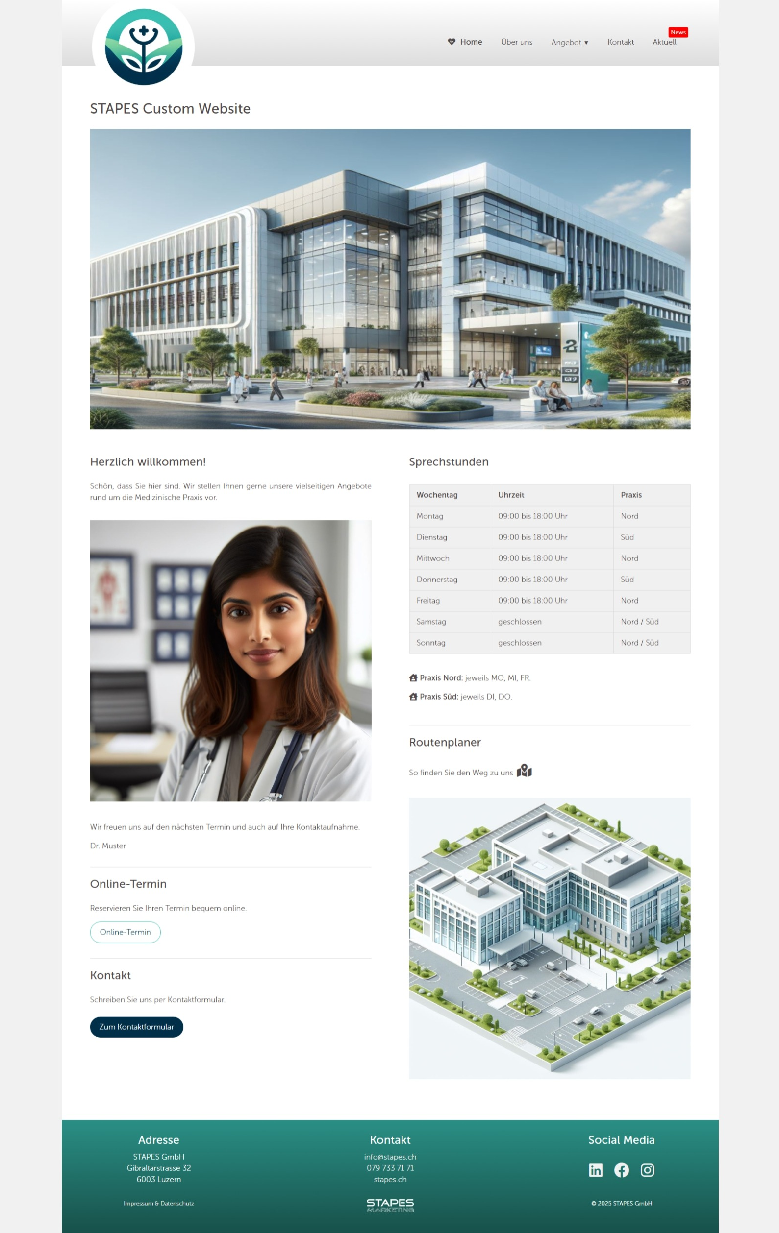 Entdecken Sie unsere massgeschneiderten Webseiten, die speziell nach Ihren Wünschen erstellt werden. Mit modernem Design und zukunftsweisender Technik, programmieren wir Ihre Seite ausschliesslich in HTML und CSS, was eine hohe Flexibilität und Kontrolle ermöglicht. Ihre Sicherheit ist uns wichtig, daher inkludieren wir SSL-Zertifikate. Bitte beachten Sie, dass unsere Dienstleistung kein Hosting beinhaltet und ohne CMS geliefert wird. Ideal für Projekte, die maximale Anpassbarkeit und Performance benötigen. Der Preis richtet sich je nach dem Umfang des Auftrags. Als Referenz für eine individuelle Website dient die STAPES-Website, sie wurde komplett individuell erstellt. Lassen Sie Ihre Vision Realität werden!